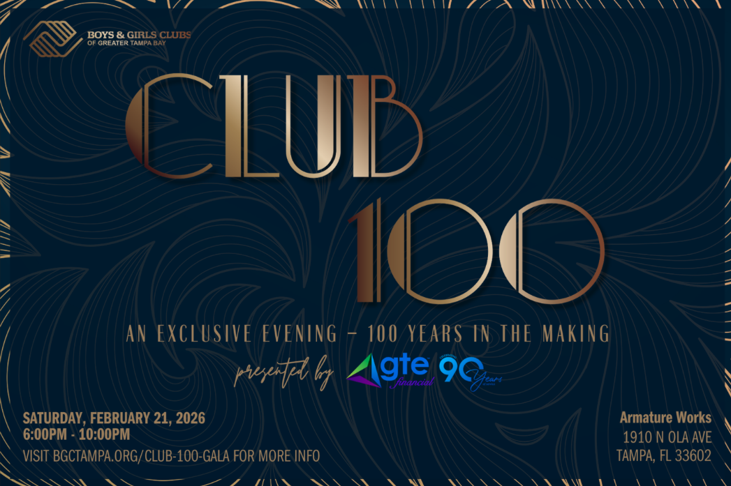 Join us as a member of the Centennial Society of the Boys & Girls Clubs of Greater Tampa Bay for our most anticipated affair—a glittering celebration marking 100 years of impact, and the bright century ahead.