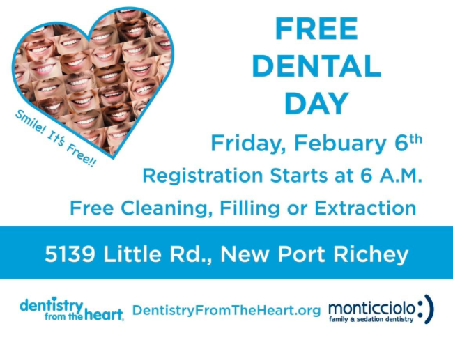 Patients will receive one FREE dental service — a cleaning, filling, or extraction.